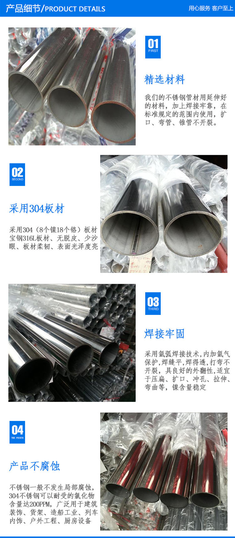 304不銹鋼管按橫斷面形狀可分為圓管和異形管。異形管有矩形管、菱形管、橢圓管、六方管、八方管以及各種斷面不對稱管等。異形管廣泛地用于各種結構件、工具和機械零部件。與圓管相比,異形管一般都有較大的慣性矩和截面模數,有較大的抗彎、抗扭能力,可以大大減輕結構重量,節約鋼材。